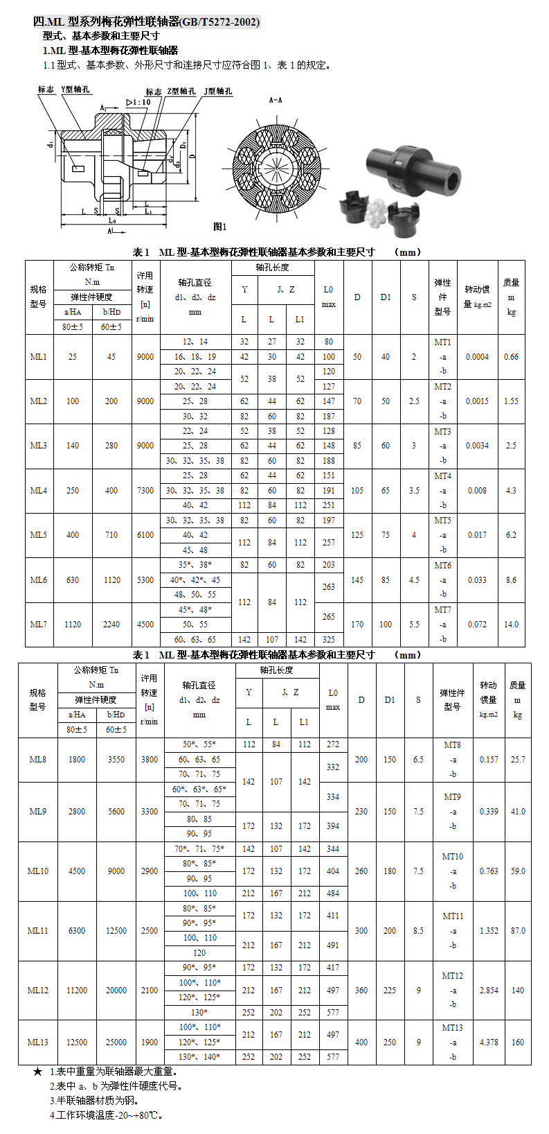 选用联轴器时供参考的相关系数(根据GB/T7511-94)